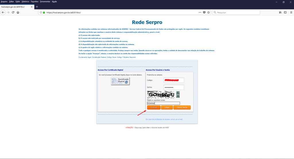 - Acesse o site: https://hod.serpro.gov.br/ para acessar a ferramenta.