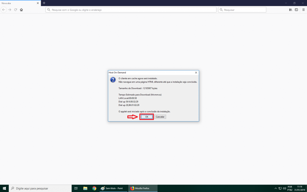 - Se solicitado, aceite a instalação do Cliente do Host on Demand: