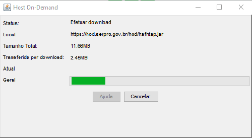 - Surgirá uma tela com barras de progresso, informando que o "Host On Demand" está sendo instalado. Basta aguardar a conclusão da instalação.