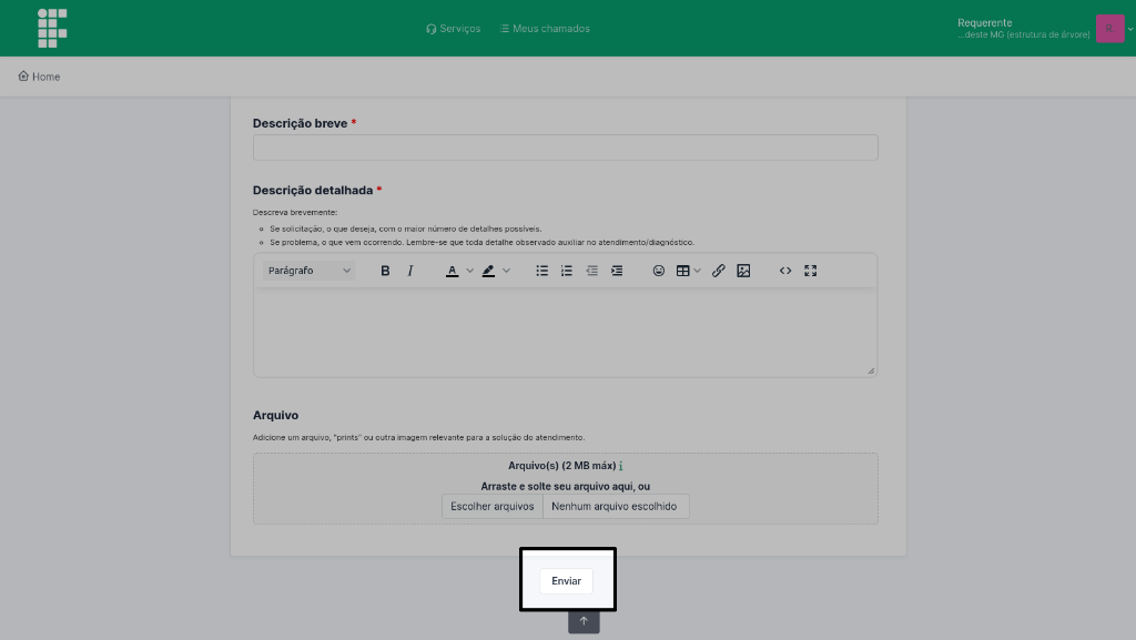 No fim desta página, o botão Enviar (Figura 5) registrará a abertura do seu atendimento no sistema.