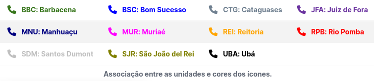 Para facilitar a identificação da unidade selecionada para abertura de um atendimento, note que os ícones dos cards possuem cores diferentes, como detalhado na tabela a seguir: