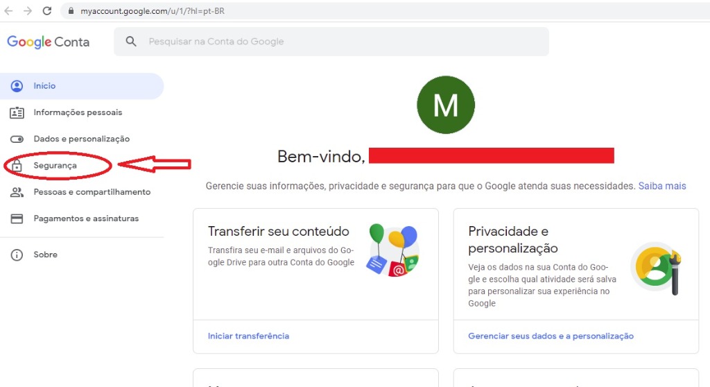 4-) Na página aberta clique em "segurança".