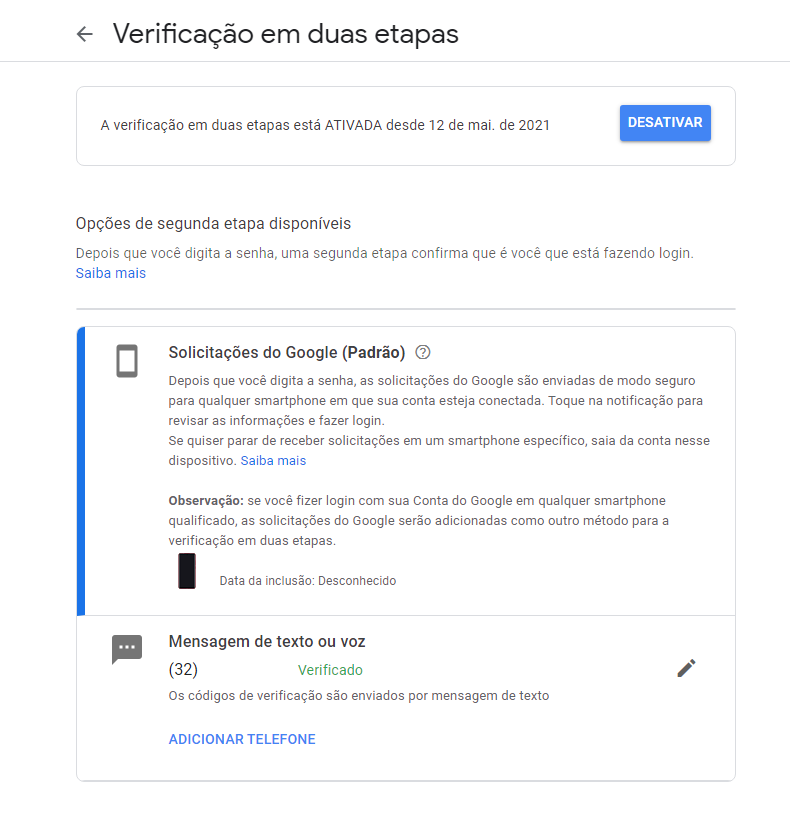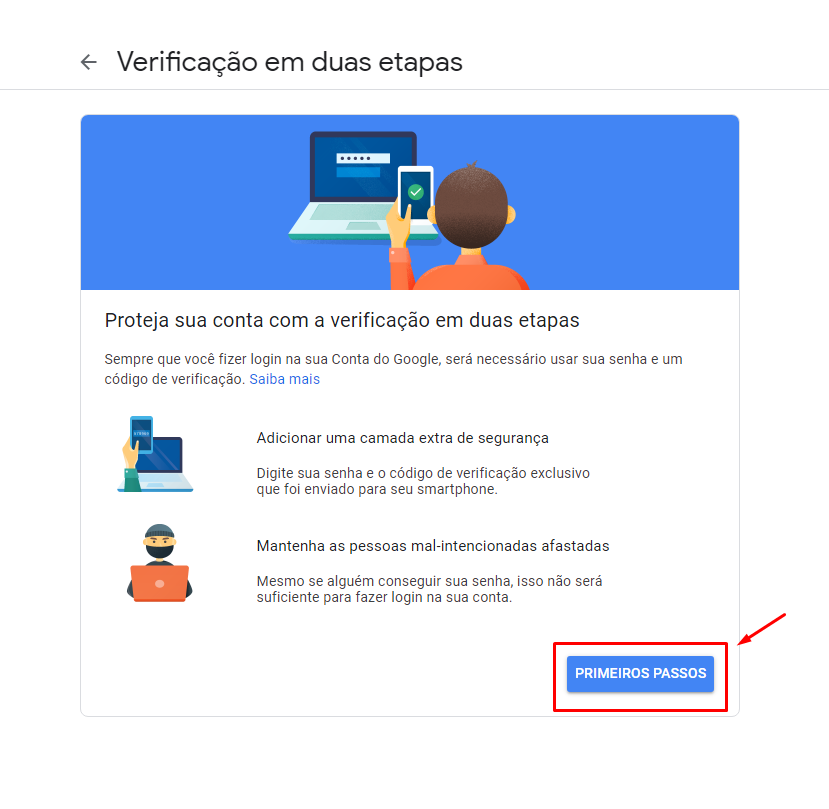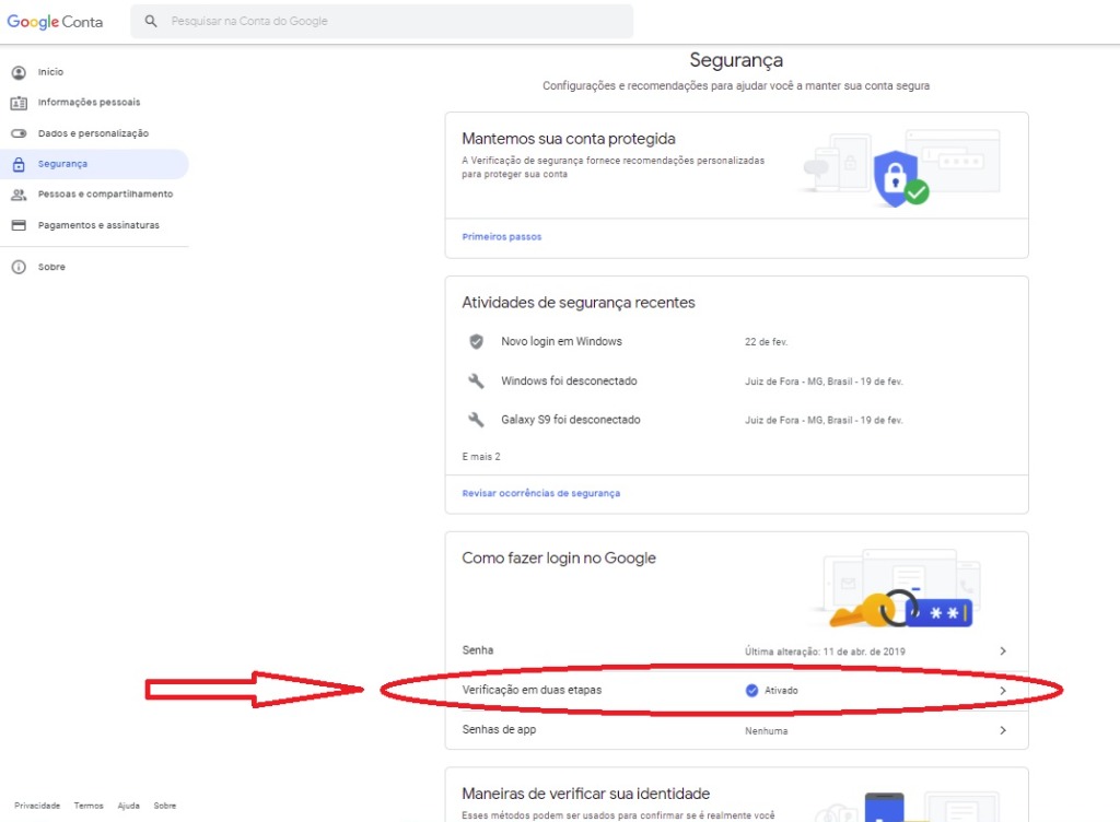 Opção 1 - Ativar a verificação em duas etapas