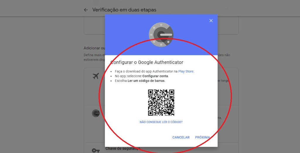 6- Para configurar a verificação em duas etapas para o app Google Authenticator, siga as etapas tradicionais na tela. Use o mesmo código QR ou chave secreta em todos os celulares. Funciona se os códigos de verificação em cada dispositivo são iguais.
