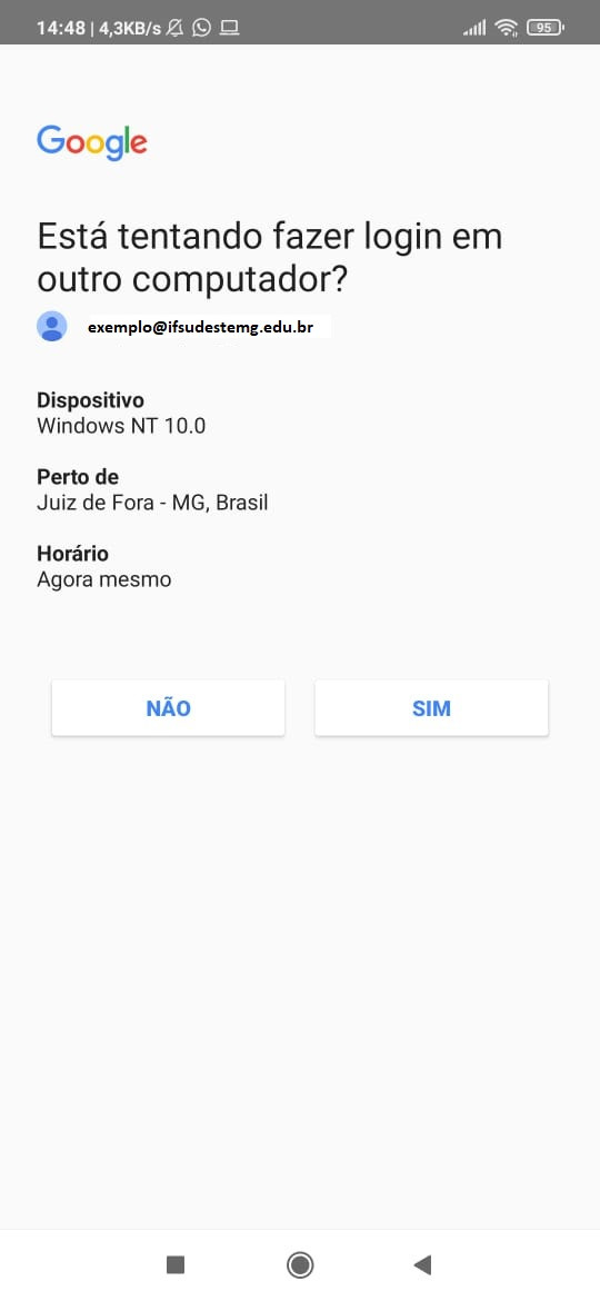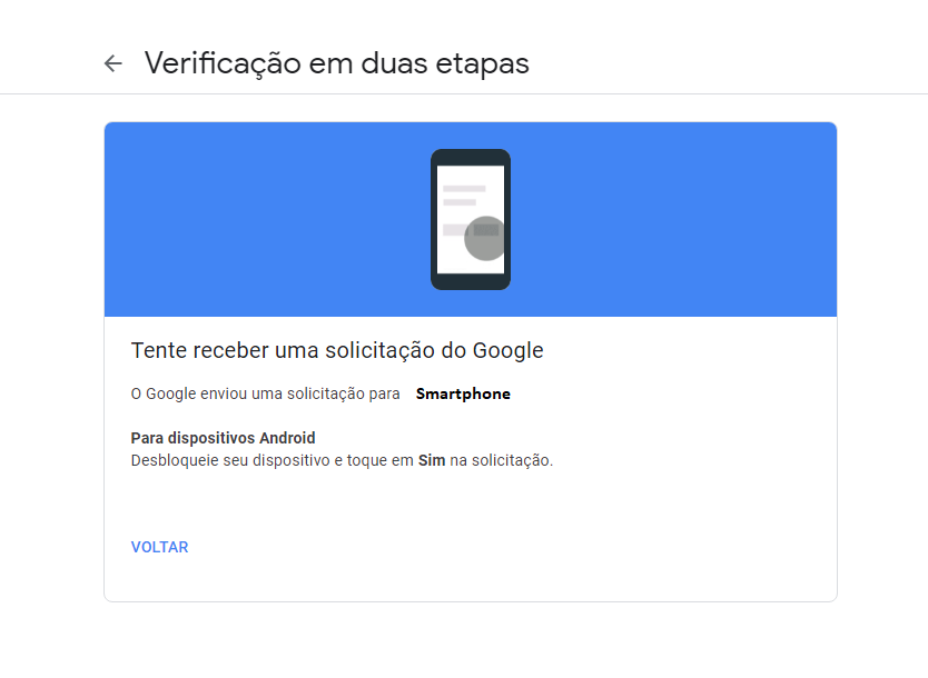 Depois de ativar a verificação em duas etapas, você precisará concluir uma segunda etapa para verificar sua identidade durante o login. Para ajudar a proteger sua conta, o Google pedirá que você execute outra ação específica (como digitar um código recebido por SMS ou e-mail).