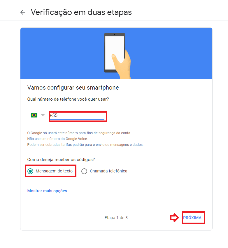 Com a verificação em duas etapas, também conhecida como autenticação de dois fatores, uma camada extra de segurança é adicionada à sua conta caso a senha seja roubada. Depois de configurar a verificação em duas etapas, você fará login na sua conta com: