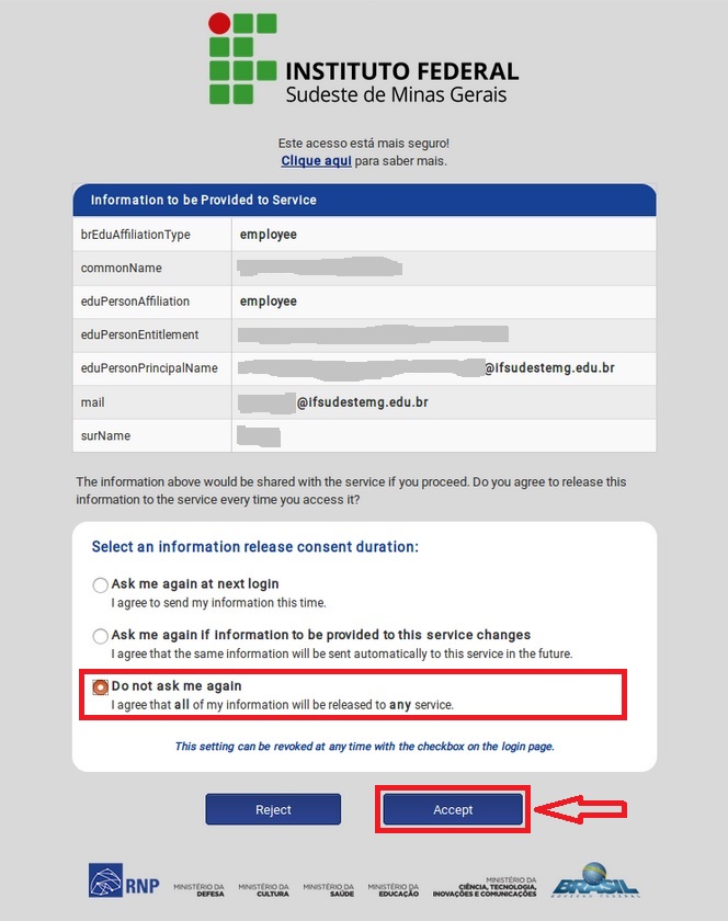 - Na tela de confirmação, marque a caixa "não perguntar novamente" e clique em "aceitar"