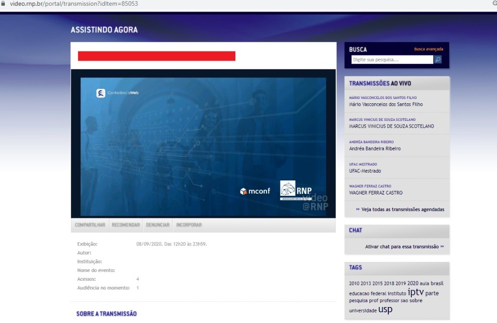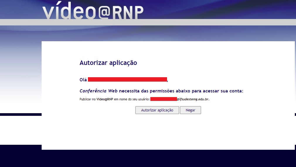 4- Autorizar a transmissão e acesso a conta no portal Video@RNP para publicação;