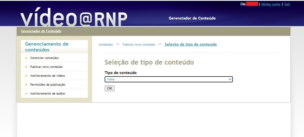 5- Selecionar o tipo de conteúdo “vídeo”.