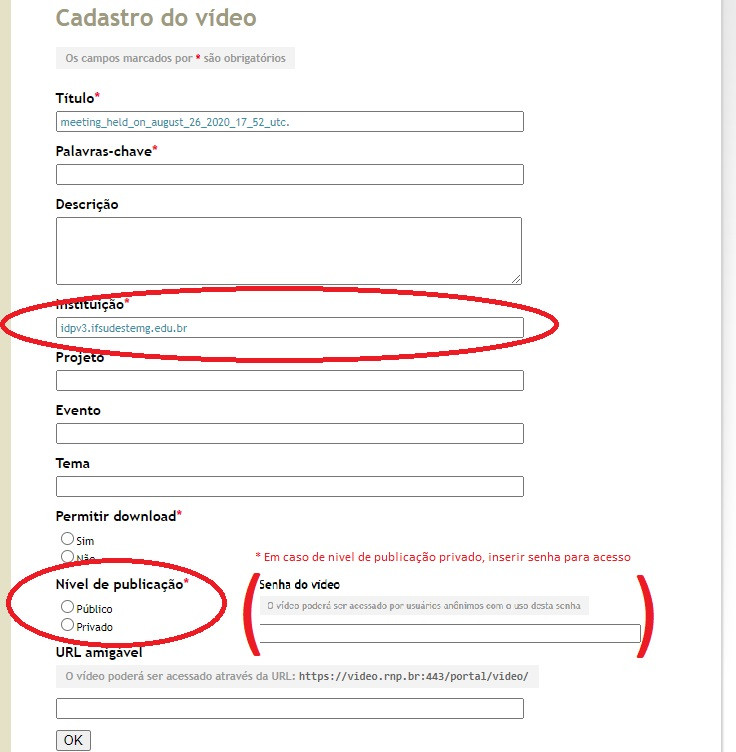 8- Preencher os dados do vídeo;