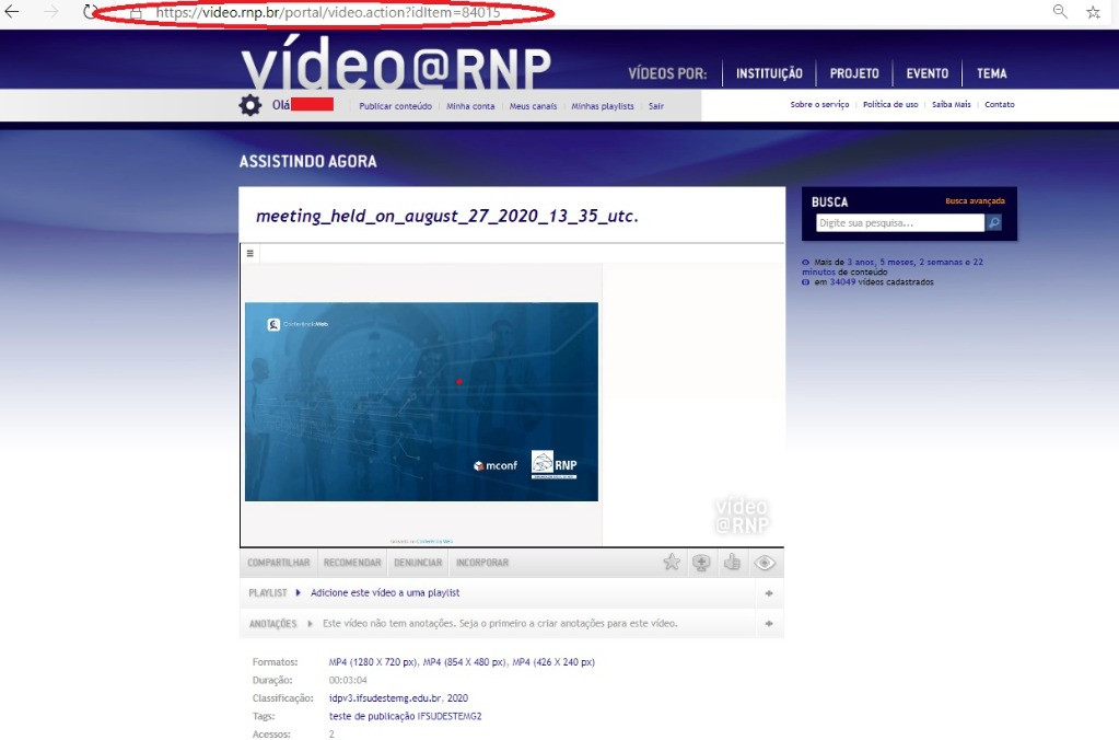 1- Acessar o Link https://video.rnp.br/portal/home