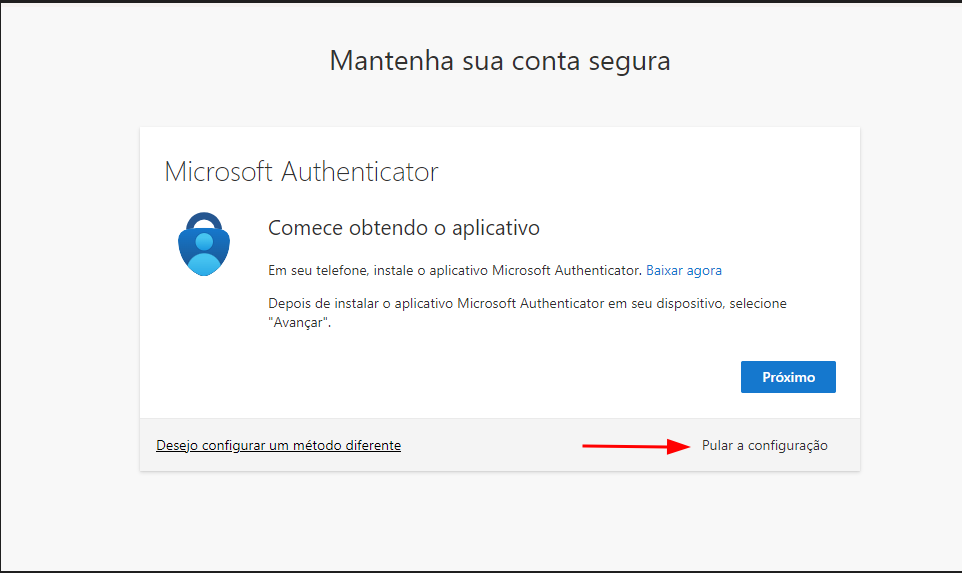 Passo 5: Na próxima página você será solicitado a realizar uma autenticação em duas etapas porém, essa ação poderá ser realizada dentro do prazo máximo de 14 dias a contar da data do primeiro acesso caso não a faça nesse momento.