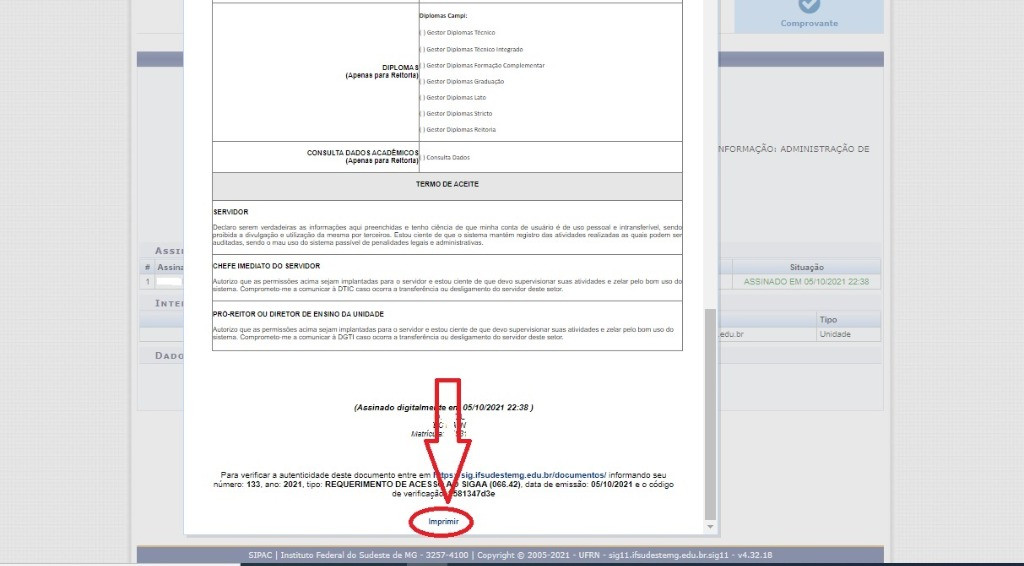 14. Abra um chamado em nossa Central de Serviços de TI, anexando a cópia do documento, devidamente assinada, na Categoria: SIG > Administração > Perfil de Acesso.
